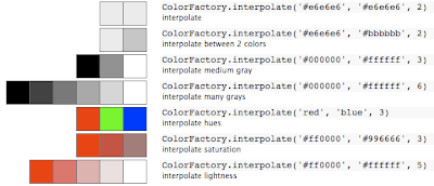And there is a generic “interpolation” beween two colors. It works interpolating hues, saturation or lightness: